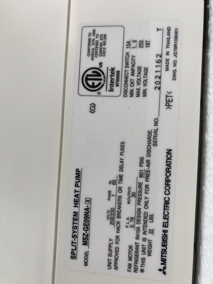 Estimate for Mitsubishi mini split ductless
