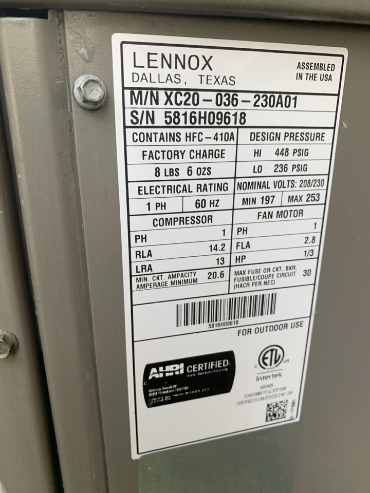 Serviced Lennox heating and air conditioning system